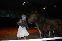 Bilder zeigen Proben zum Interaktiven Märchen: Das Wasser des Lebens. Akteure: Isabell Schmitt-Egner (Waldwesen "Wollank"), Sandra Thiel (Prinzessin Luisa), Stephan Imholz in 2009 (Prinz Luis, Wassergnom). Pferde: Ganti (Isländer), Annelie (Pony schwarz), Europa (Pony gescheckt), Tara (Pony braun), Angelo (Haflinger), Freitag (Pony braun gescheckt), Domino (Pony weiß).